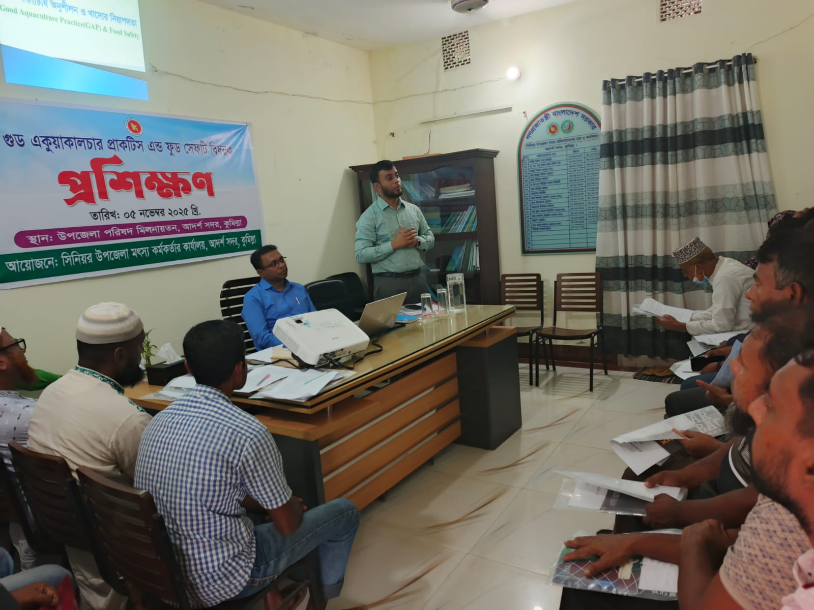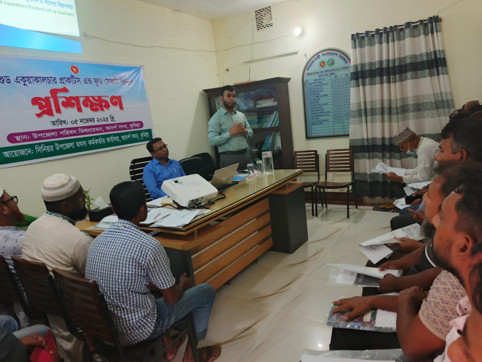 ০৫-১১-২০২৫ খ্রি. তারিখ গুড একোয়া কালচার প্রাকটিস এন্ড ফুড সেফটি বিষয়ক প্রশিক্ষণ সিনিয়র উপজেলা মৎস্য কর্তমকর্তার দপ্তর, আদর্শ সদর, কুমিল্লায় অনুষ্ঠিত হয়